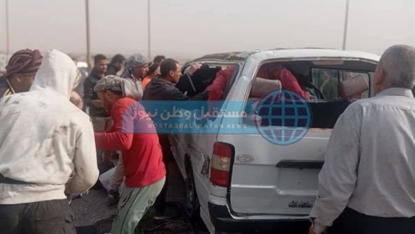 إصابة 4 أشخاص في حادث انقلاب ميكروباص بالطريق الأوسطى
