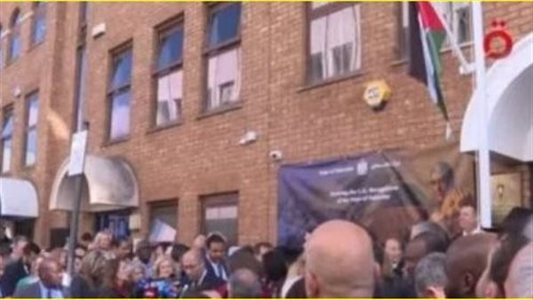 رفع العلم الفلسطينى على مبنى البعثة الفلسطينية فى لندن