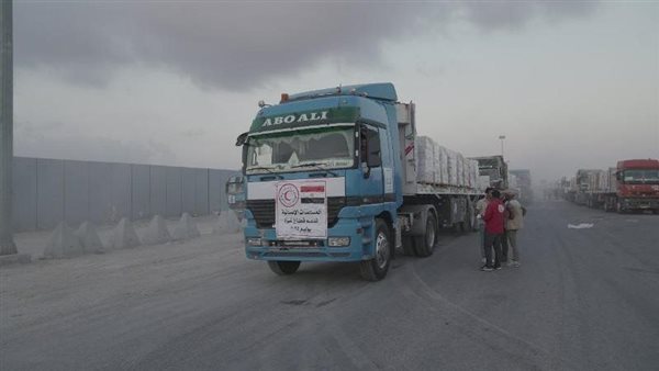 تحرك الفوج الخامس لشاحنات المساعدات الإنسانية من مصر إلى قطاع غزة