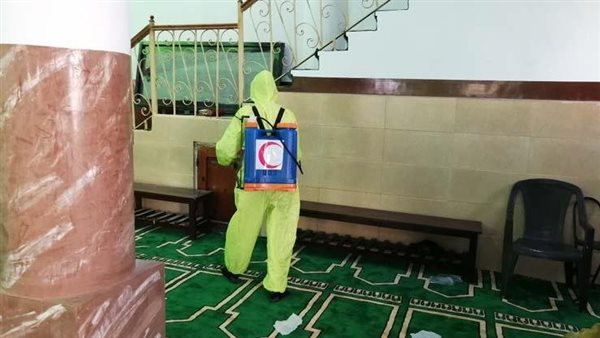 الهلال الأحمر بالسويس يعقم المساجد استعدادًا لصلاة عيد الفطر المبارك