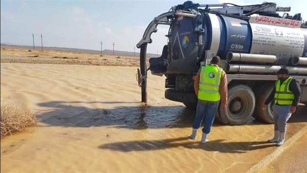 صور| «القابضة للمياه» تدفع بسيارات من القاهرة والجيزة لسحب الأمطار في رأس غارب