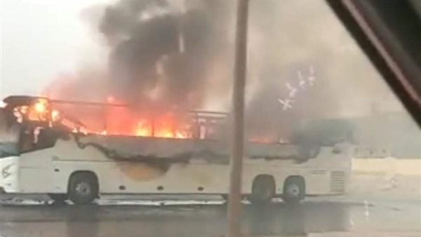 اللقطات الأولى لحريق أتوبيس سياحي بـ15 مايو