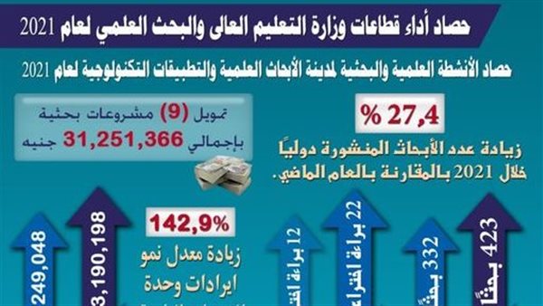 التعليم العالي: زيادة 27.4% في عدد الأبحاث المنشورة دوليًا خلال 2021