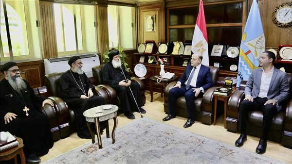 محافظ كفرالشيخ يتلقى التهنئة من وفد الكنيسة برئاسة الأنبا«ماركوس» لثقة رئيس الجمهورية