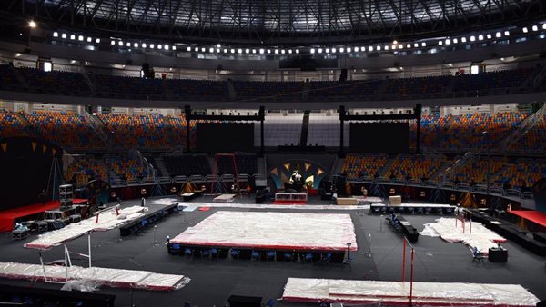 شاهد.. صالة استاد القاهرة تتزين لاستقبال بطولة كأس العالم للجمباز