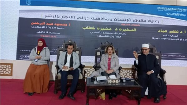 مشيرة خطاب فى ندوة الأزهر بمعرض الكتاب: مصر تبذل جهودا ضخمة لمكافحة الاتجار بالبشر