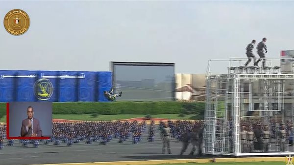 في احتفالات العيد الـ73.. طلبة الشرطة يقدمون عرضا على تسلق ونزول المرتفعات بالحبال