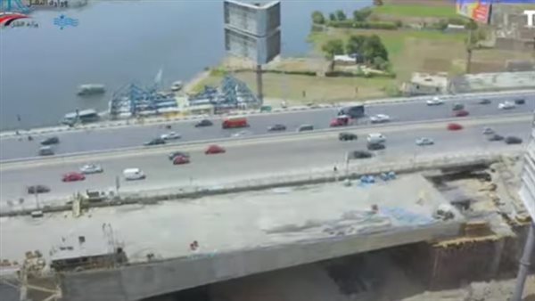 شاهد.. تصوير جوى يرصد أعمال التطوير في كوبري المنيب العلوي