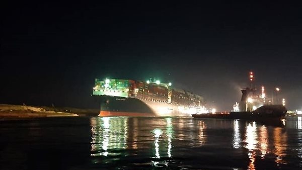 شاهد.. لحظة نجاح عمليات تعديل وضعية السفينة الجانحة بقناة السويس