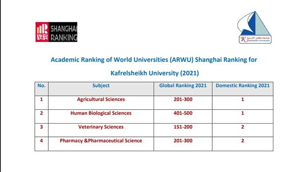 جامعة كفر الشيخ تحقق مراكز متقدمة في تصنيف شنغهاي للتخصصات عام 2023