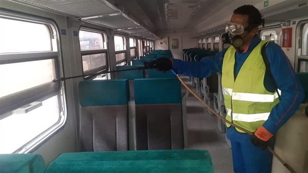 تواصل تطهير وتعقيم جميع قطارات ومحطات السكك الحديدية.. صور