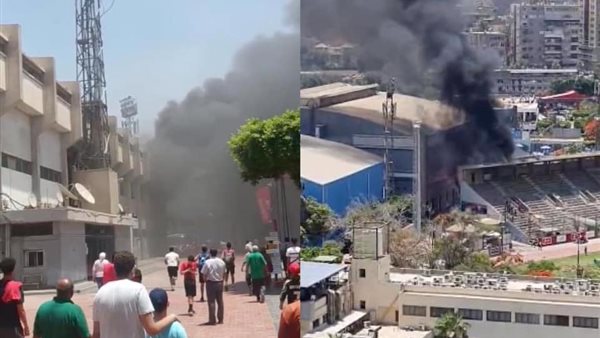 مخلفات خشبية ودهانات.. تفاصيل حريق ملعب التتش بالنادي الأهلي بالجزيرة.. صور