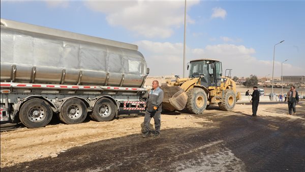انقلاب سيارة مواد بترولية أعلى كوبرى بالقاهرة والمحافظ يتفقد موقع الحادث
