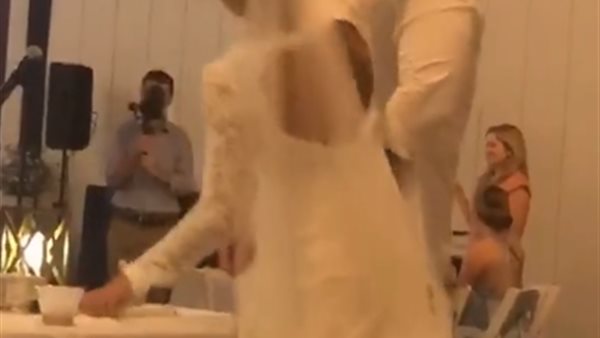 عدواني ومخيف.. عريس يلقي بالتورتة في وجه عروسه في ليلة العمر..صور