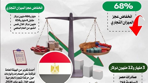 سمير: انخفاض عجز الميزان التجاري بـ68% وتراجع الواردات بـ40% خلال يناير 2024