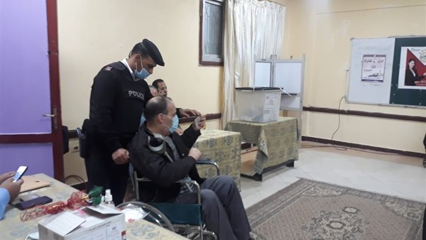 رجال الشرطة تساعد كبار السن للادلاء بأصواتهم فى انتخابات مجلس النواب بالدقهلية