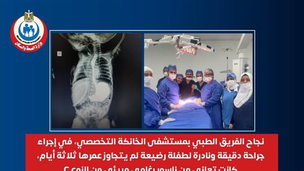 نجاح فريق طبي بمستشفى الخانكة في إجراء جراحة نادرة لطفلة رضيعة