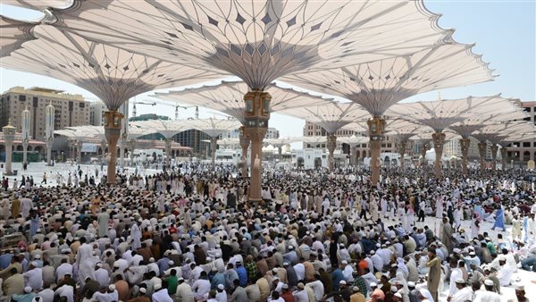 ضيوف الرحمن يؤدون صلاة الجمعة الأولى بالمسجد النبوي بعد أدائهم مناسك الحج