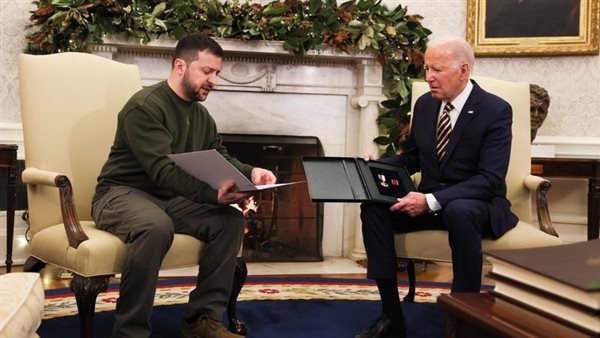 زيلينسكي يُقلد بايدن ميدالية عسكرية أوكرانية في اجتماع بالبيت الأبيض