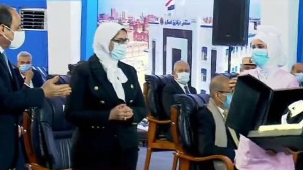 وزيرة الصحة تقدم درعًا تذكاريًا من الأطقم الطبية للرئيس السيسي