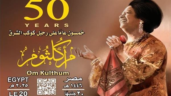 هيئة البريد تصدر بطاقة تذكارية بمناسبة مرور ٥٠ عامًا على رحيل كوكب الشرق أم كلثوم