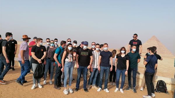 أمام تمثال أبو الهول.. زاهي حواس يستقبل أول وفد أمريكي بعد جائحة كورونا