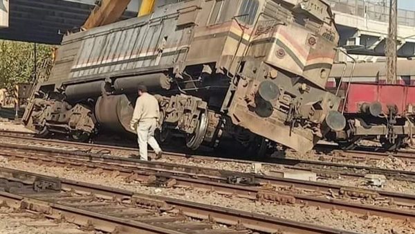 خروج جرار قطار المنصورة عن القضبان بشكل مفاجئ |صور