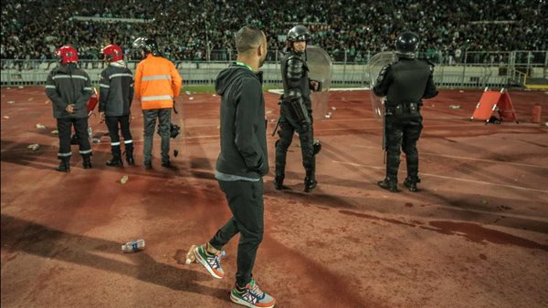 جمهور الرجاء يلقي الزجاجات على لاعبي الأهلي قبل انطلاق المباراة
