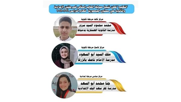 «تعليم دمياط» تحصد 3 مراكز بمسابقة الطالب المثالي على مستوى الجمهورية