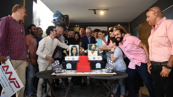 بشرى تحتفل بـ«معالي ماما» مع فريق الفيلم داخل الاستديو| صور