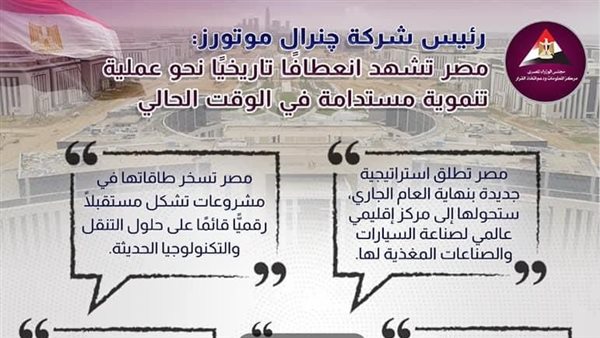 «جنرال موتورز»: مصر تشهد انعطافا تاريخيا نحو عملية تنموية مستدامة حاليا
