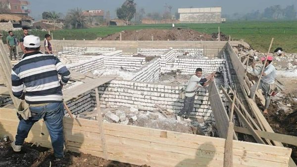 إيقاف حالة تعد بالبناء المخالف بدون ترخيص بمدينة المنيا.. صور