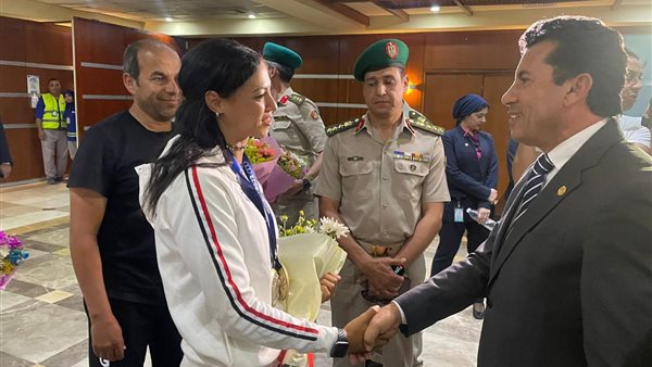وزير الرياضة يستقبل بسنت حميدة بمطار القاهرة بعد تتويجها بذهبيتين