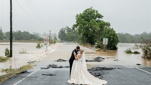 عروس أسترالية تتحدى الفيضانات وتتزوج من شريك حياتها (صور)