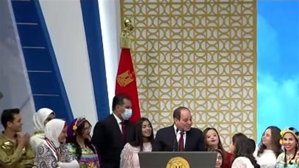 الرئيس السيسي يلتقط صورة تذكارية مع شباب ينفذون مشروعات جديدة