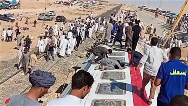 تواصل جهود إنقاذ الركاب في حادث انقلاب قطار مطروح