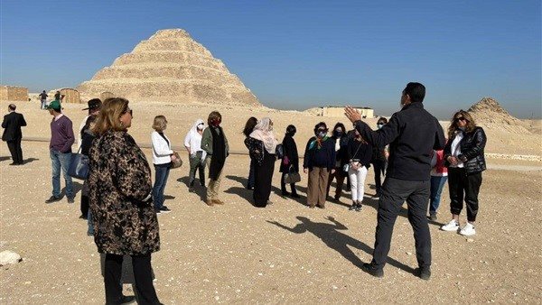زوجات سفراء 20 دولة بمرافقة قرينة وزير الخارجية في زيارة آثار سقارة.. صور