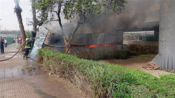 دخان كثيف غطى المكان.. كواليس إخماد حريق شب بموقف عبد المنعم رياض