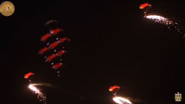 الرئيس السيسي يشهد عرضا غنائيا بالمظلات في ختام منتدى شباب العالم