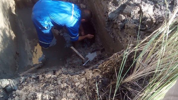 إصلاح كسر بماسورة مياه في مركز المنيا