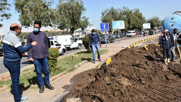 إصلاح هبوط أرضي وكسر بماسورة مياه بميدان المجاهدين بحي غرب أسيوط
