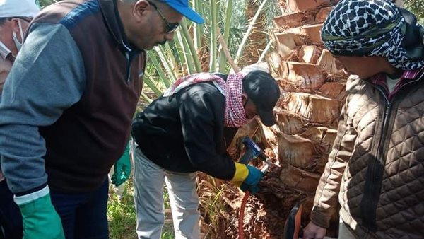 علاج نخيل مصاب بـ«السوسة الحمراء» بواحة الخارجة في الوادي الجديد