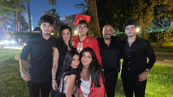 غادة عادل ومجدي الهواري يحتفلان بتخرج ابنهما عبدالله في صورة عائلية واحدة