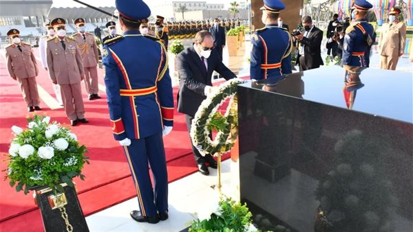 بالصور.. الرئيس يضع أكاليل الزهور على قبر الجندي المجهول والسادات وعبدالناصر