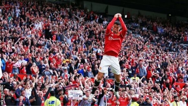 لافتة «اغتصاب» تفسد فرحة رونالدو بهدفيه في ظهوره الأول مع مانشستر يونايتد