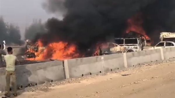 مصرع وإصابة 10 أشخاص في حادث تصادم أعلى الطريق الصحراوي بالصف