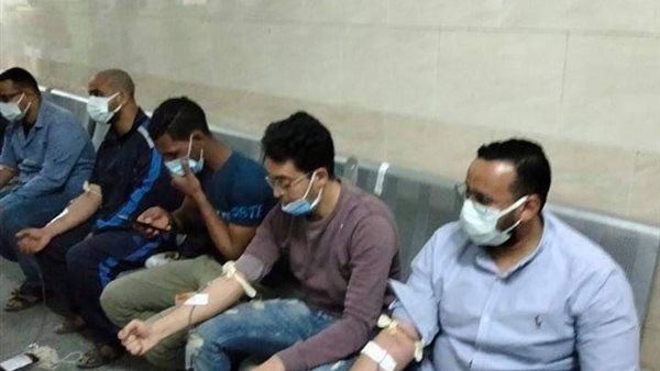 شباب سوهاج يتبرعون بالدم لإنقاذ مصابي حادث قطاري سوهاج.. صور