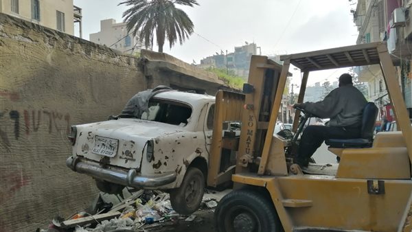 حملات مكبرة لرفع السيارات المتهالكة والمهملة من الشوارع بالإسكندرية