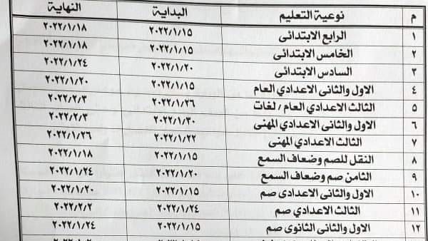 اعتماد جدول امتحانات الفصل الدراسي الأول في محافظة القاهرة