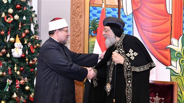 وزير الأوقاف يهنئ البابا تواضروس بالعام الميلادي الجديد